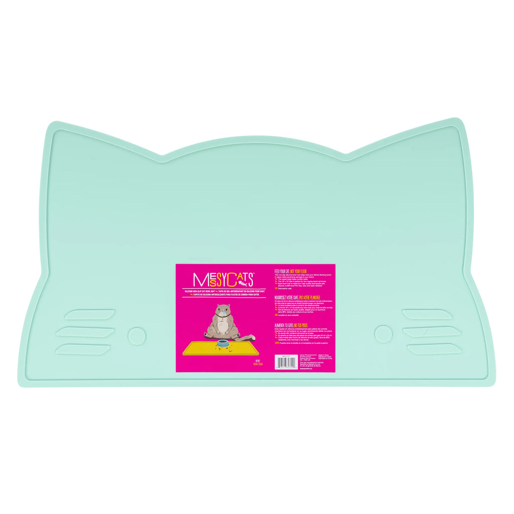 - This cat shaped silicone mat in mint is designed compliment your home decor, protect your floors and keep your cat bowl(s) in place.